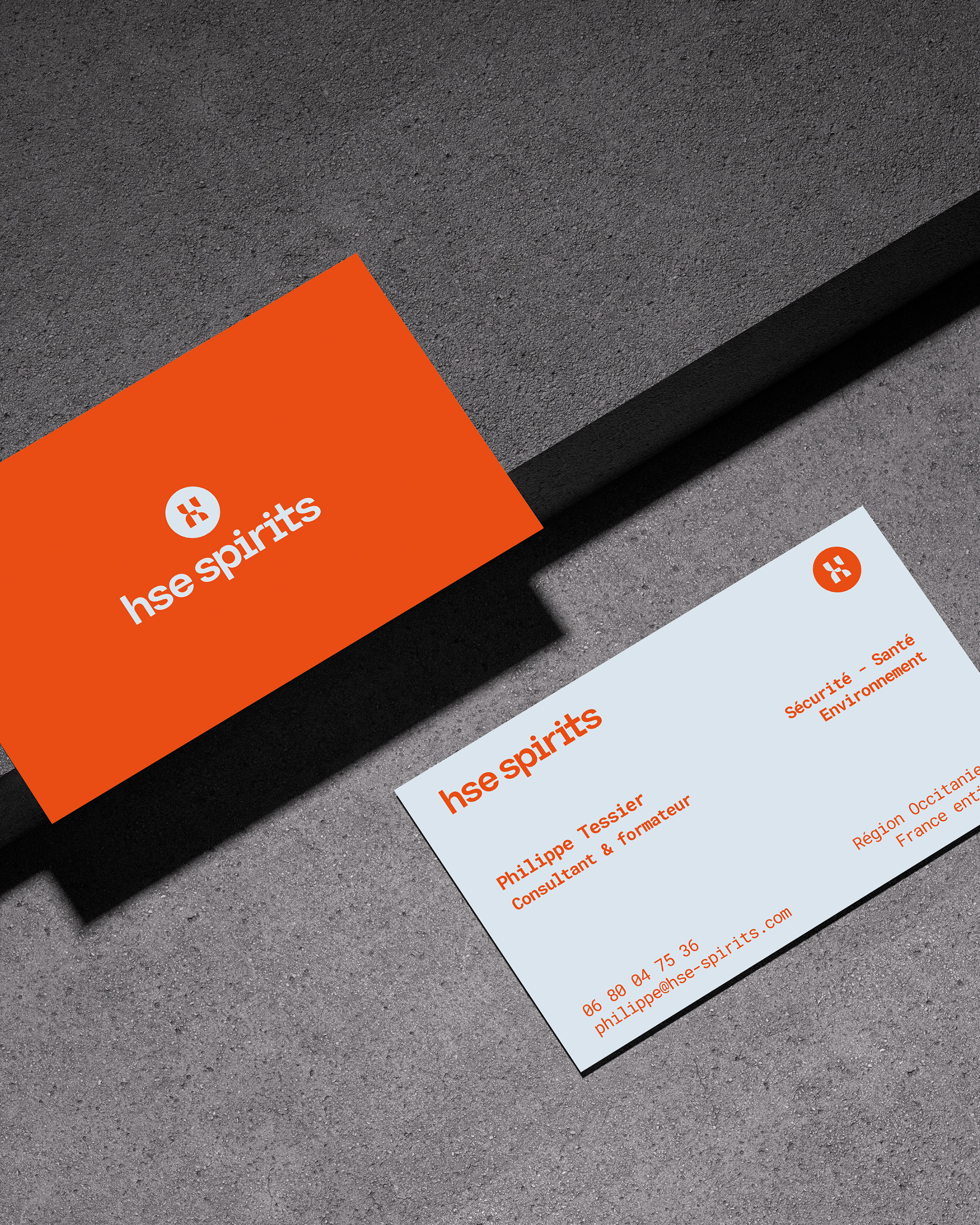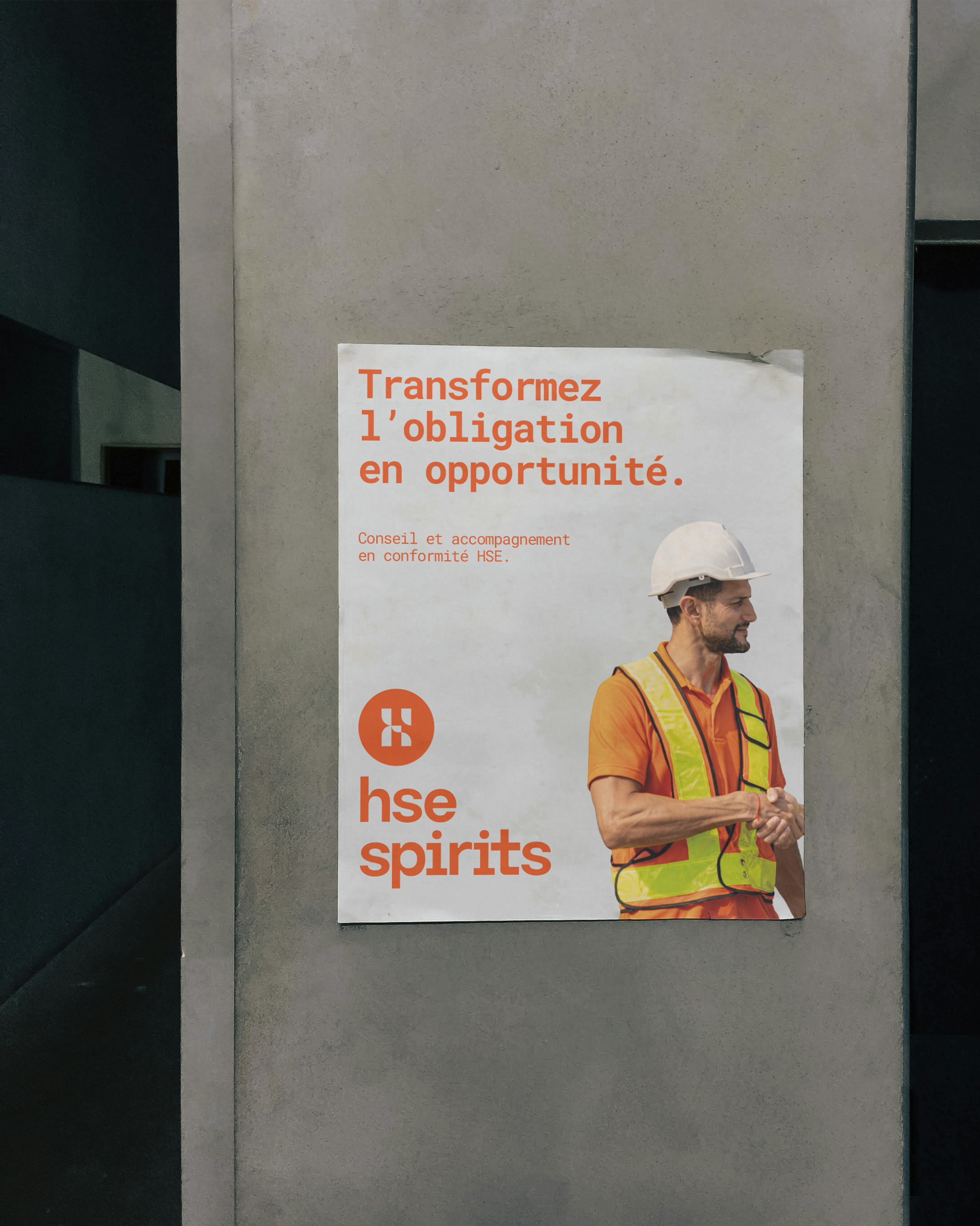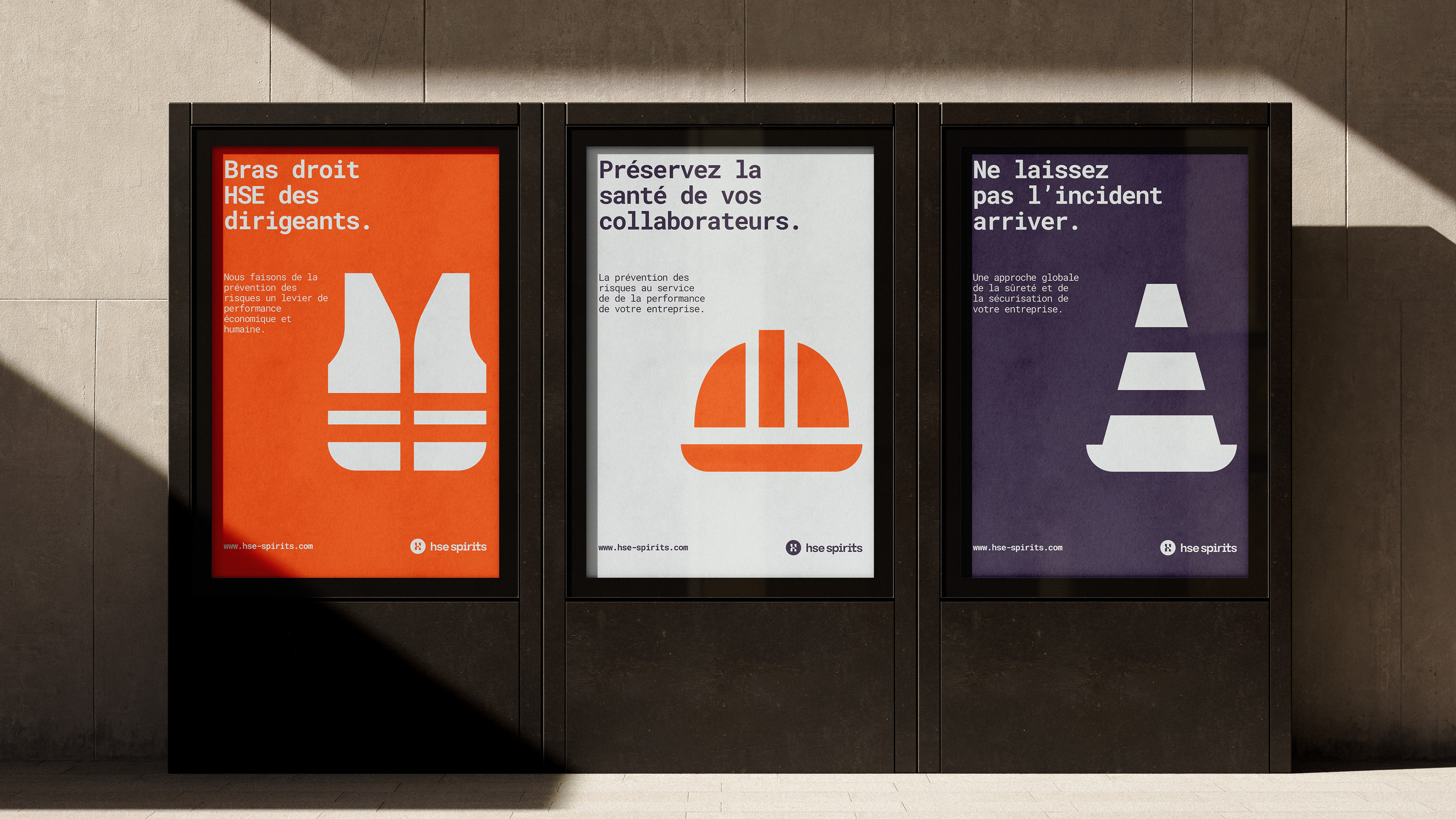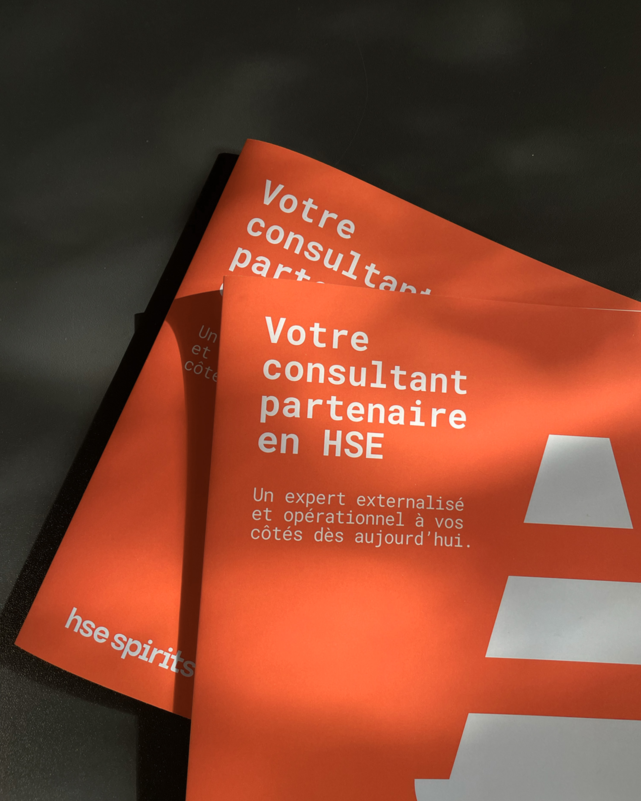 Des pictogrammes inspirés du terrain prolongent ce langage visuel simple et mémorable, traduisant la promesse d’HSE Spirits : sécuriser le terrain, valoriser l’intelligence collective et offrir aux dirigeants la sérénité nécessaire à leur développement.